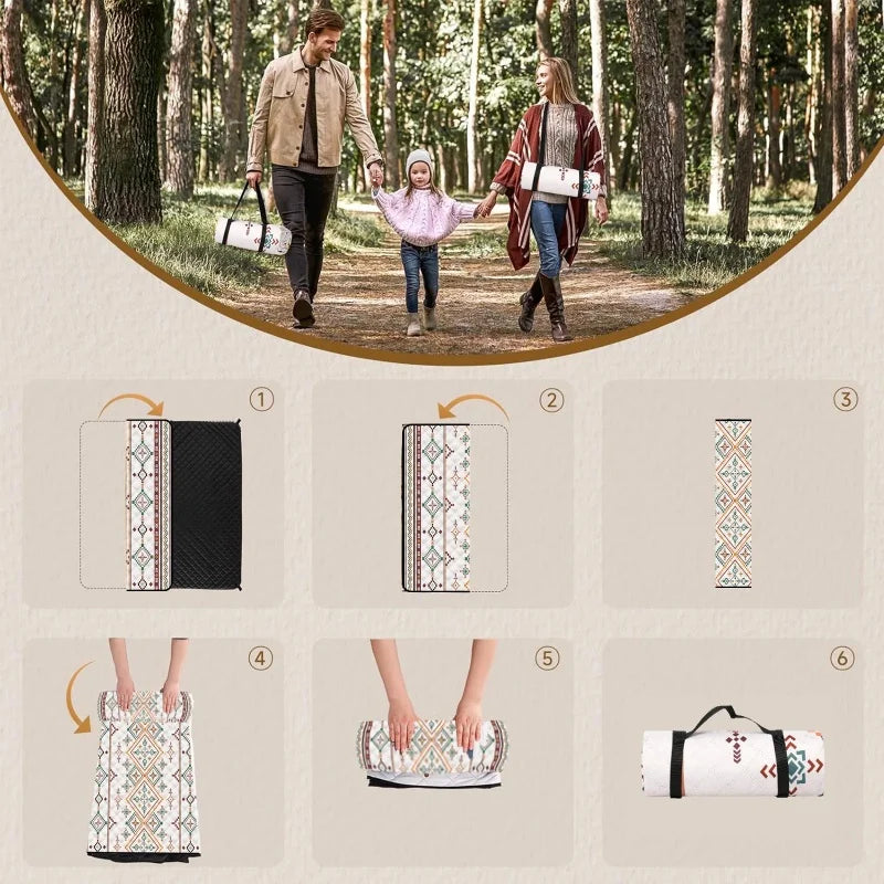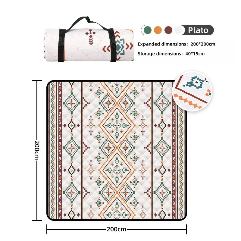 Premium Foldable Picnic Mat – Moisture-Proof & Waterproof Outdoor Camping Blanket – 2x2m Large Portable Lawn, Beach, Park, and Garden Mat with Carry Handle – Ethnic Style Design
