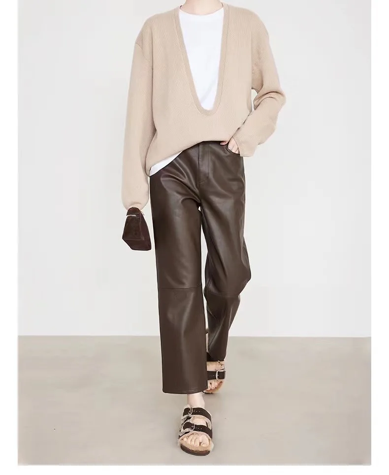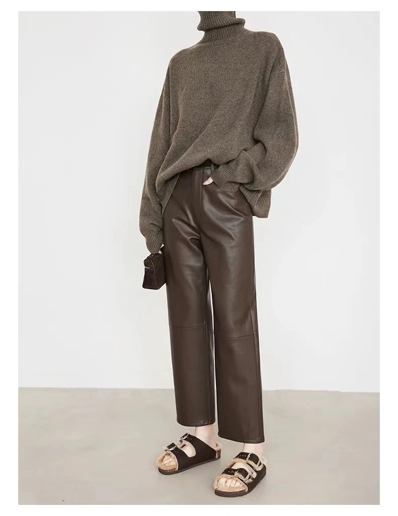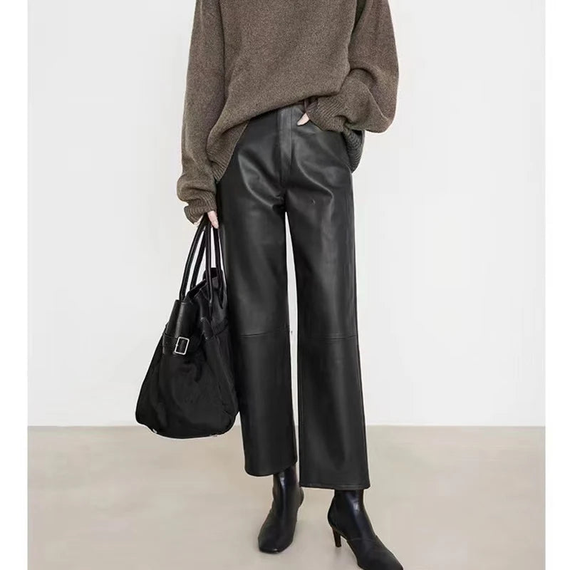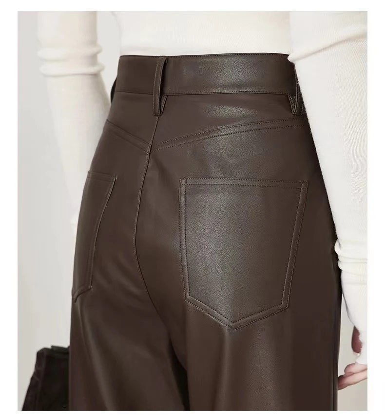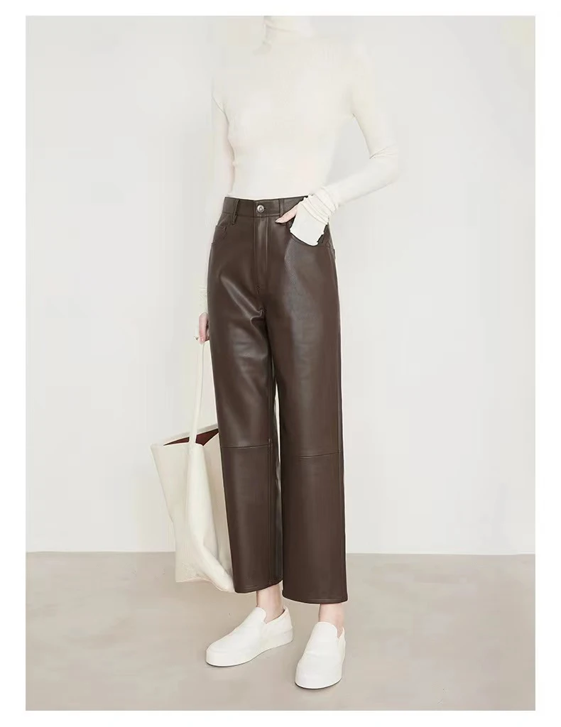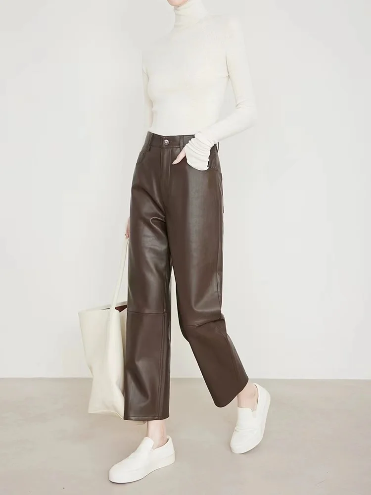 100% Leather Pants Women Autumn Winter Fashion Sheepskin High Waist