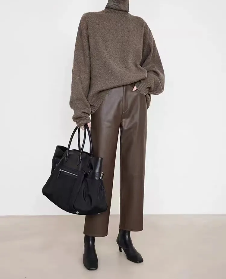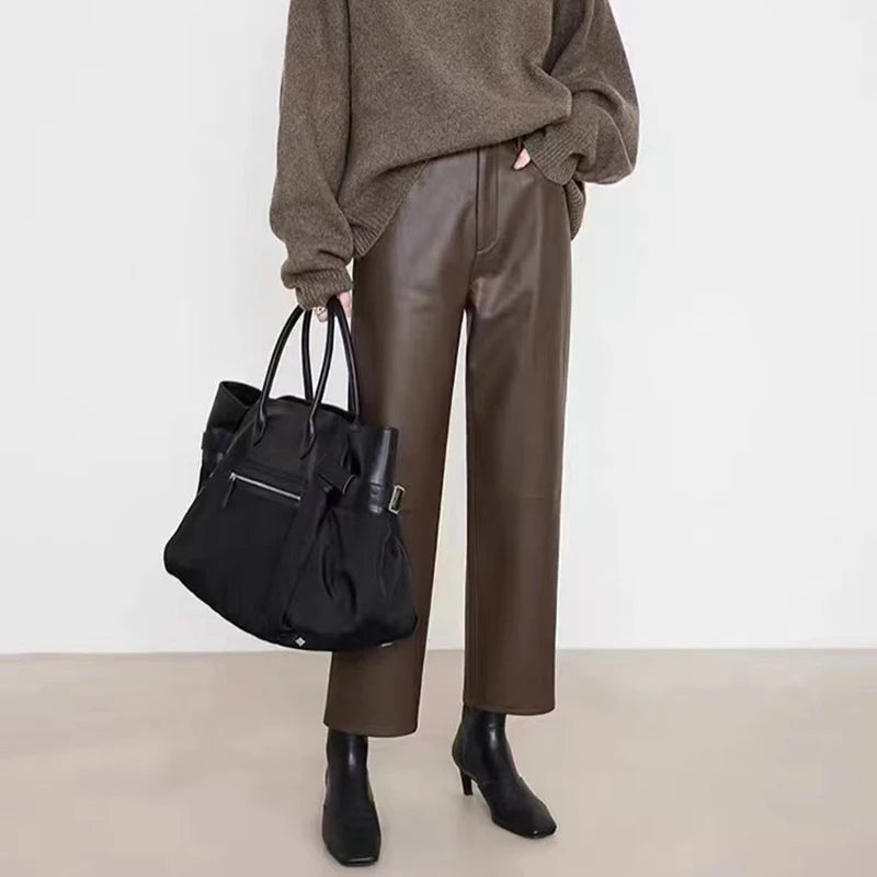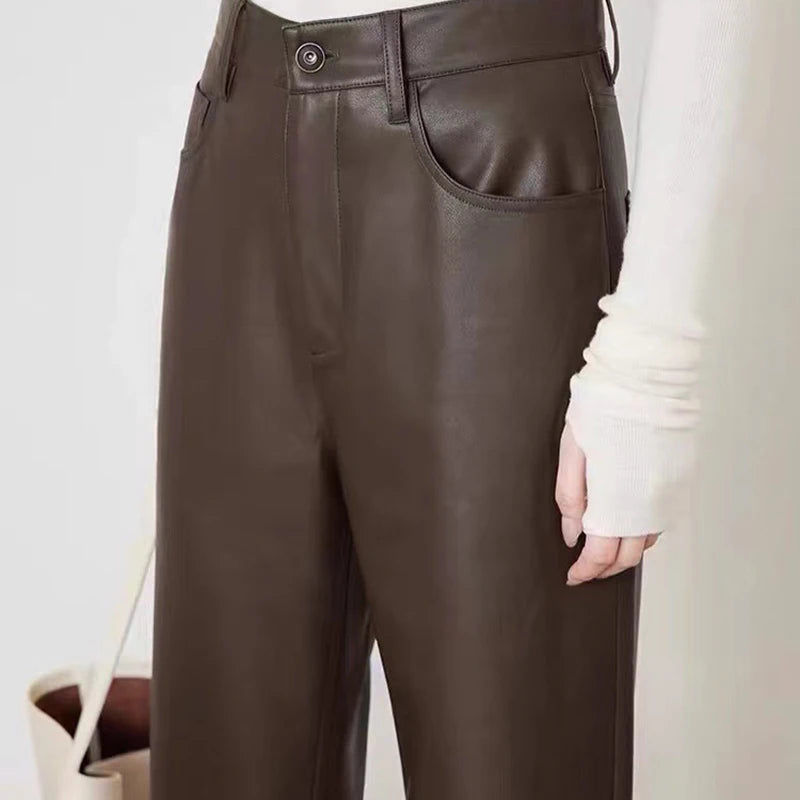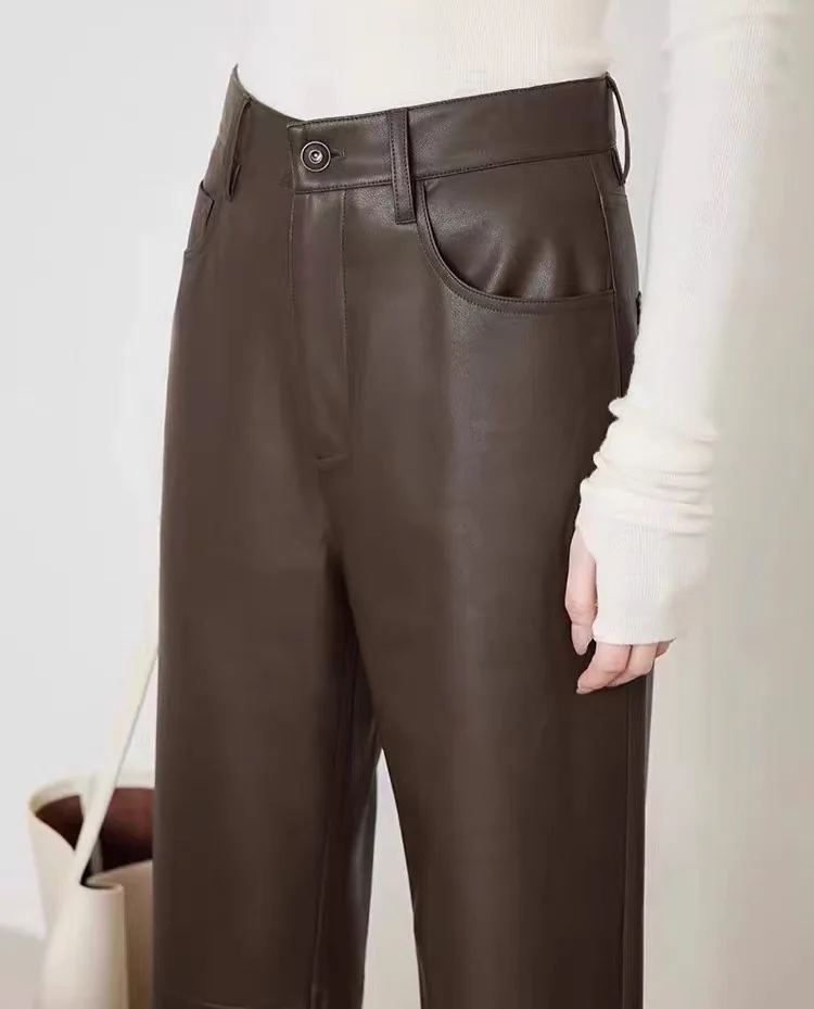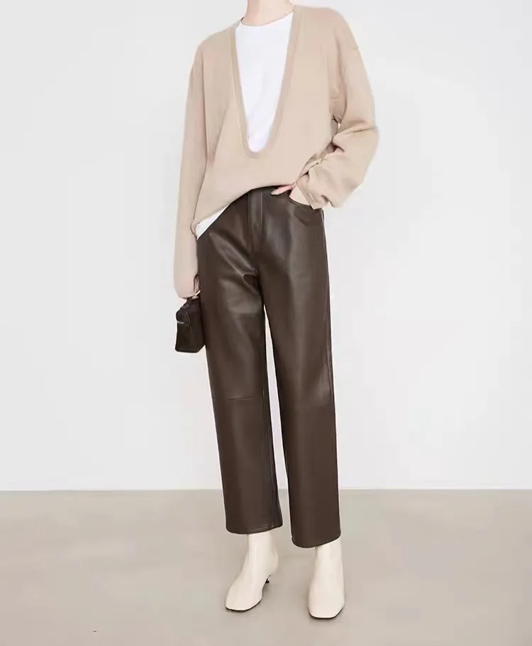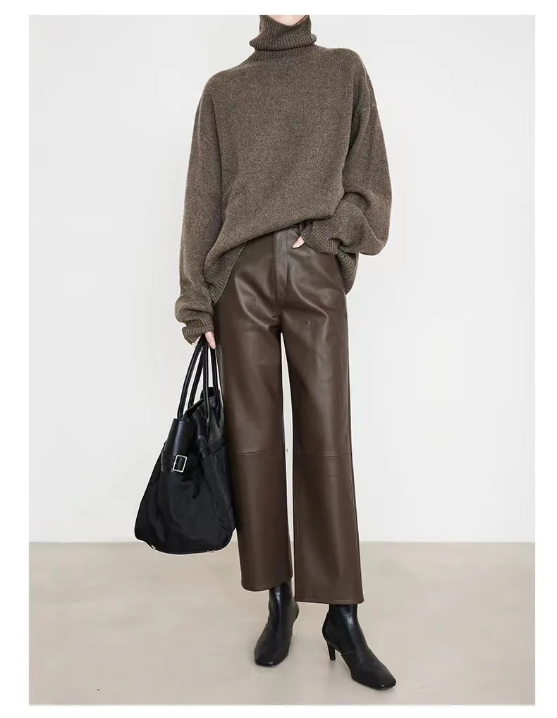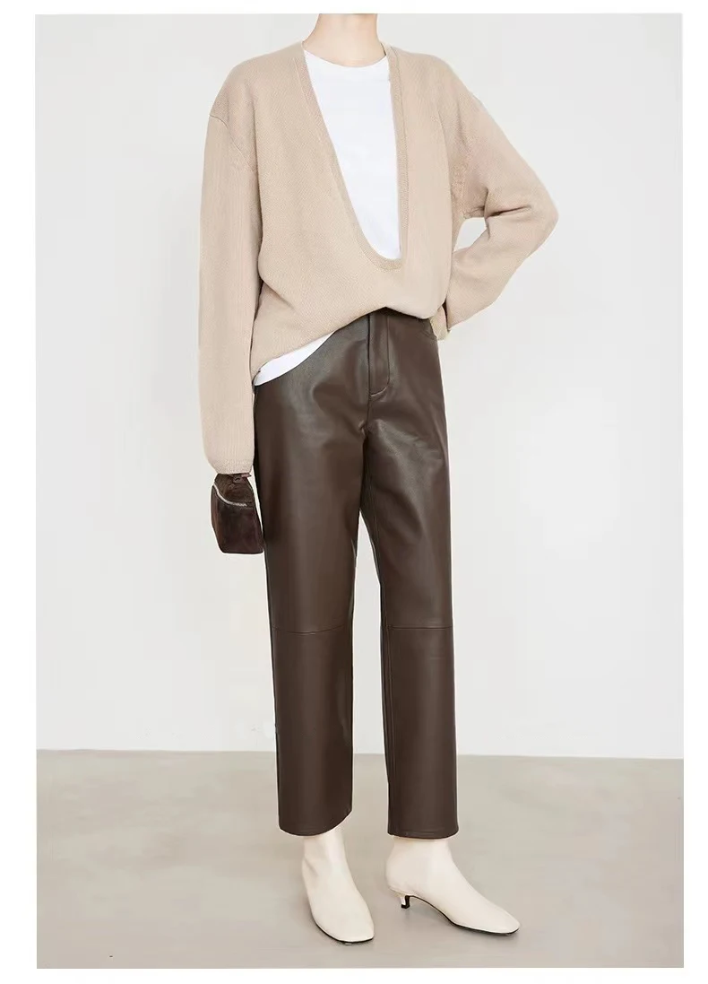 100% Leather Pants Women Autumn Winter Fashion Sheepskin High Waist