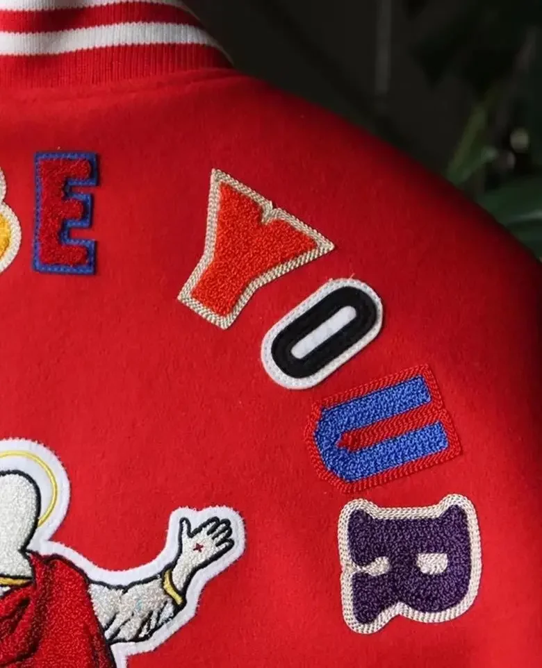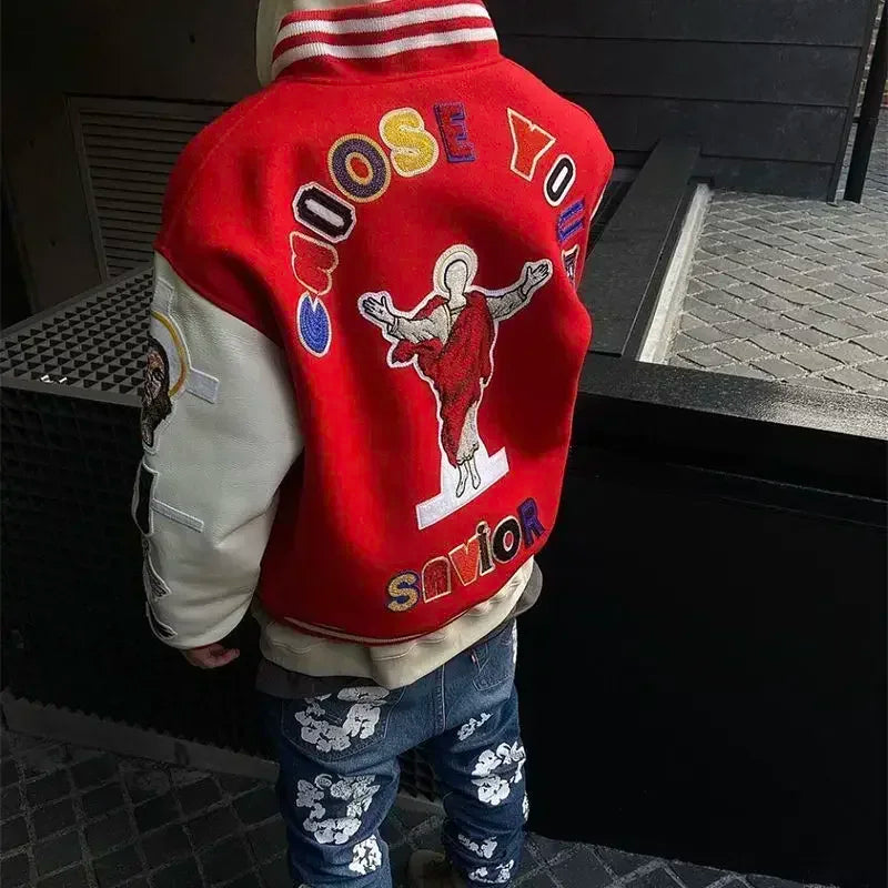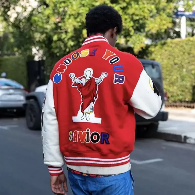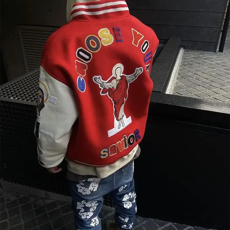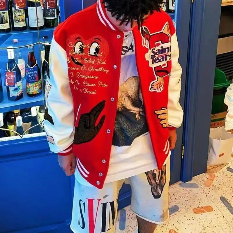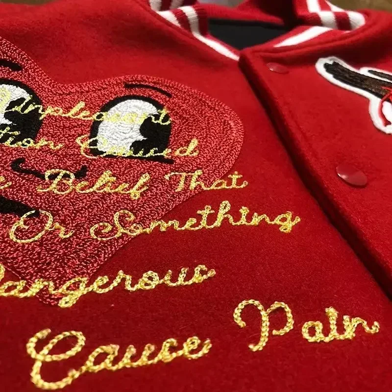American Fashion Trendy Brand High-density Letter Cartoon Embroidered Red Baseball Uniform Clothing For Men And Women Jacket