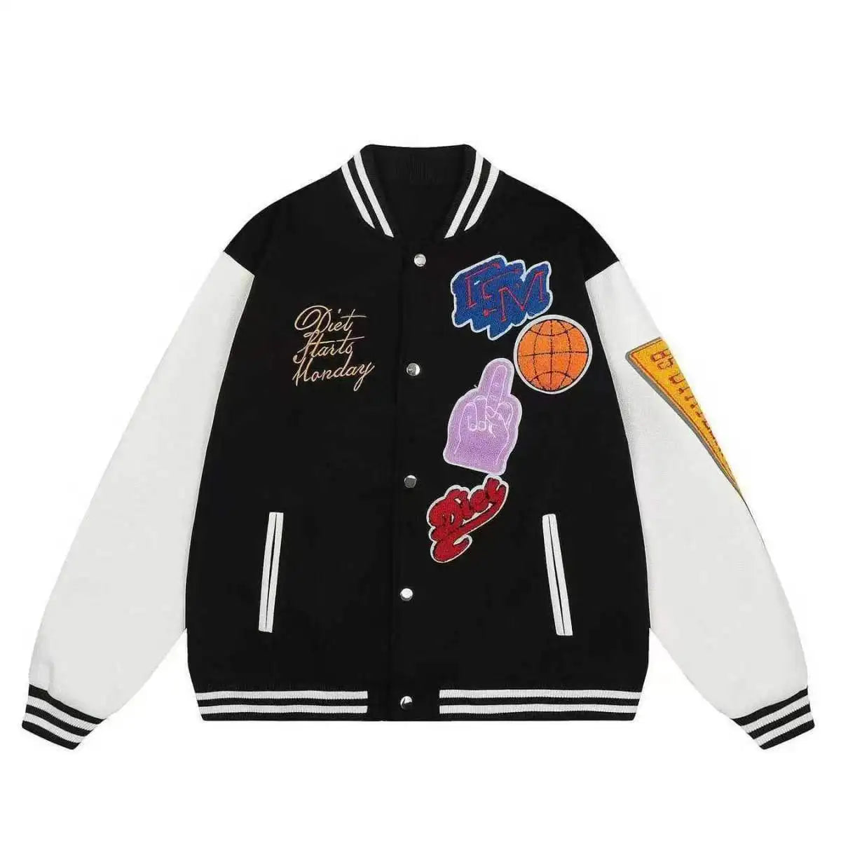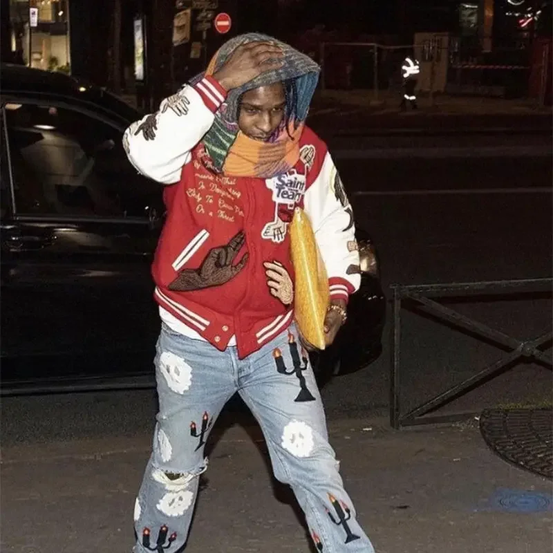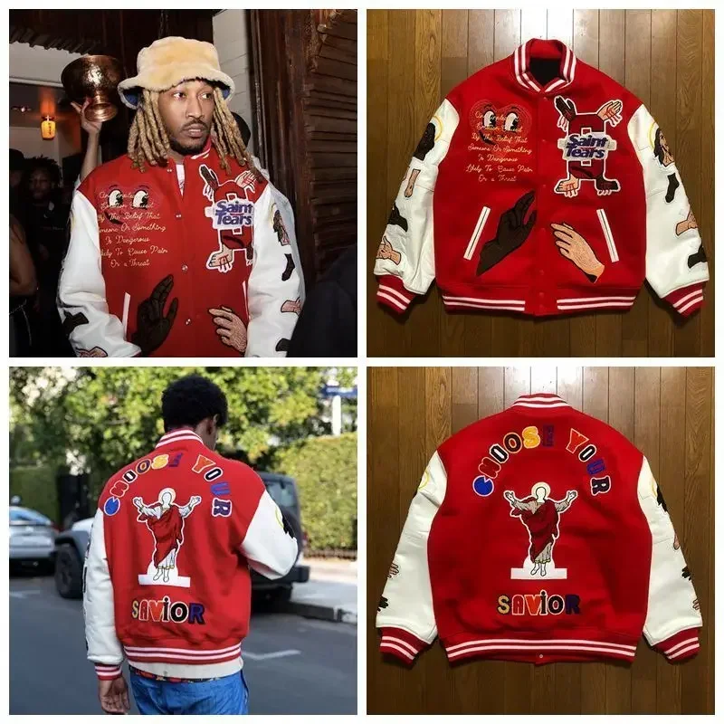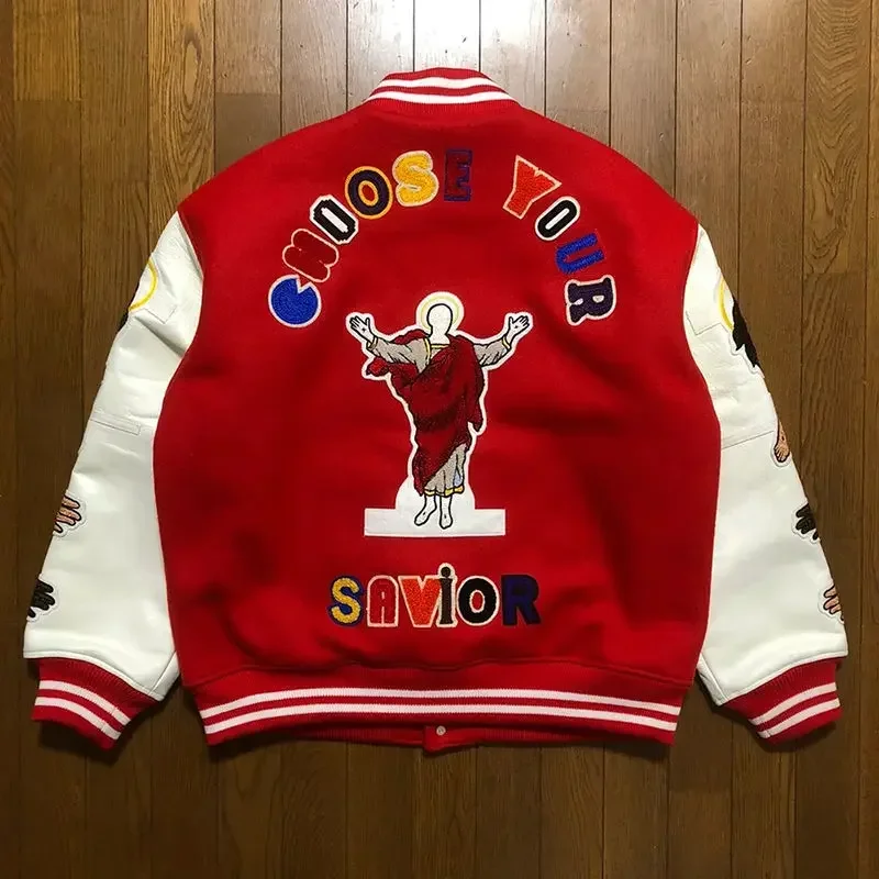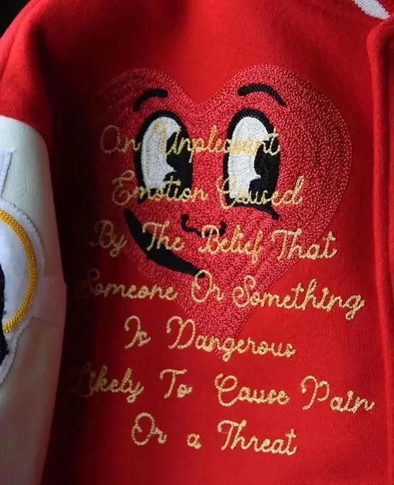 American Fashion Trendy Brand High-density Letter Cartoon Embroidered Red Baseball Uniform Clothing For Men And Women Jacket