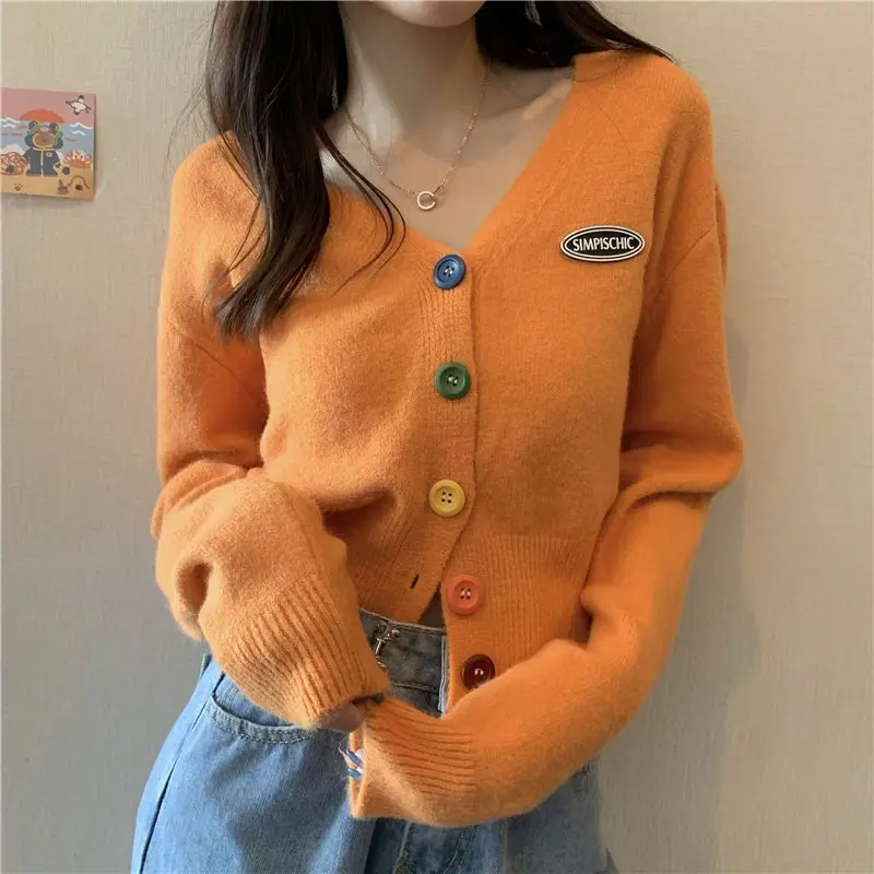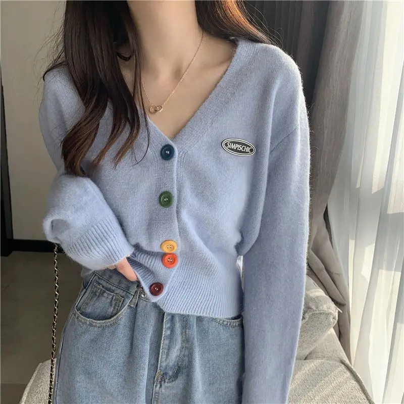 Cardigan for Women Long Sleeve Knitted Sweaters Sweater Cropped Crochet Kawaii V Neck Cardigans Woman Black Tops Cute 2025 Trend