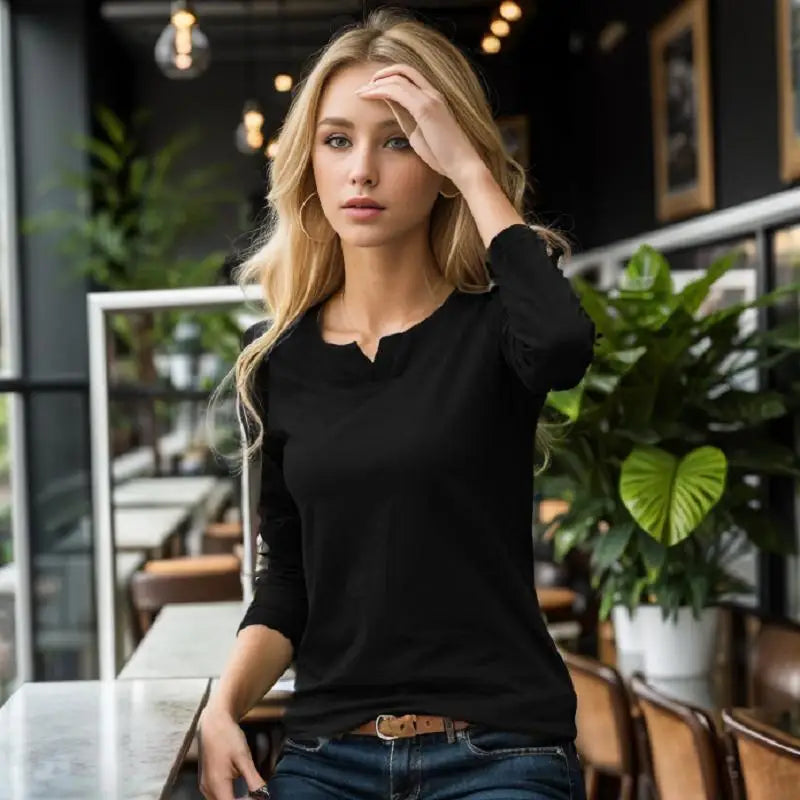 Long Sleeve T-Shirt Women 2024 New Small V-Neck Bottoming Shirt European Style Slim and Thin Top Youth Temperament