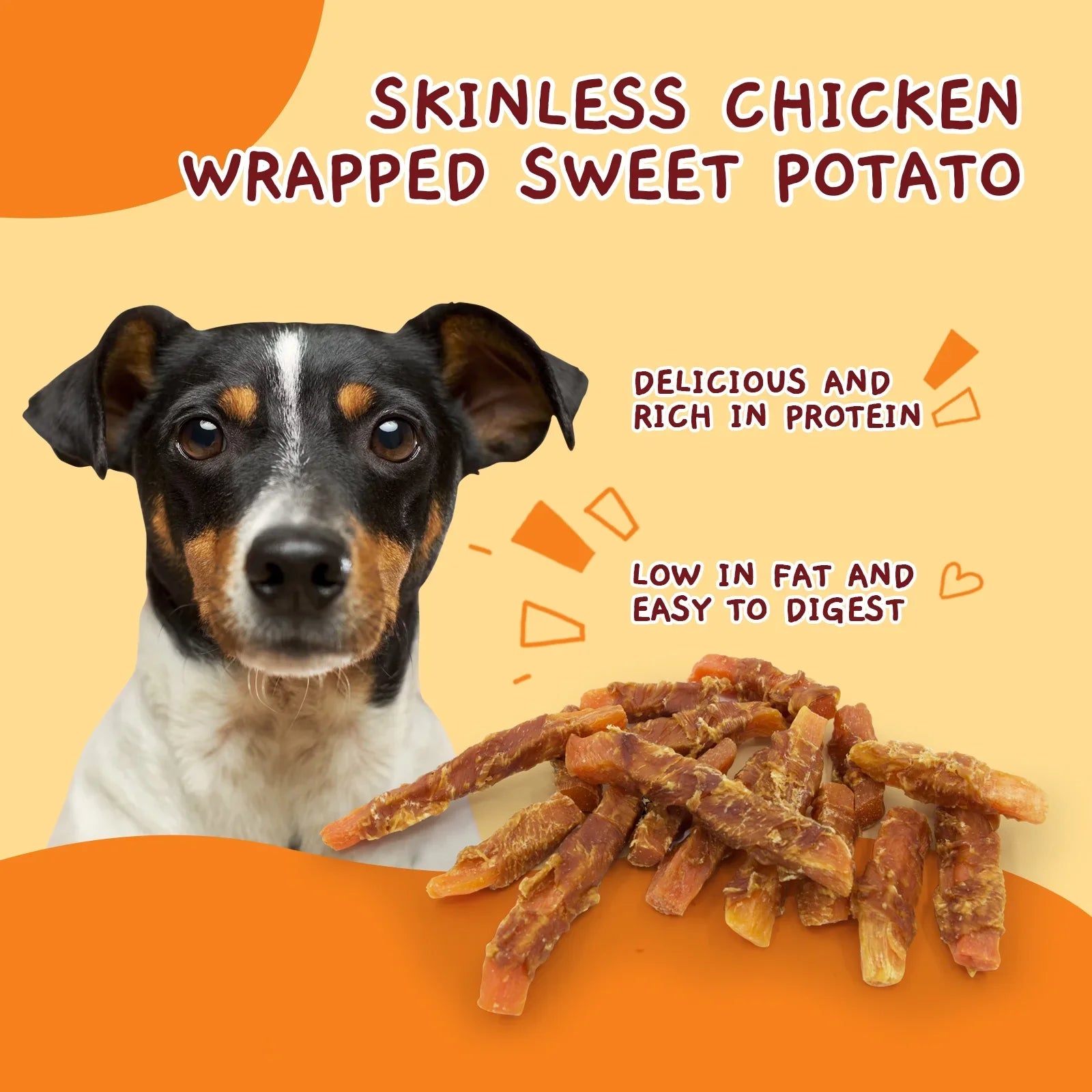 • Our dog treats are made with skinless chicken wrapped sweet potato twists, ensuring the safety and health of your pet. With no artificial ingredients, fillers, or preservatives, you can feel good about giving your dog a healthy snack.