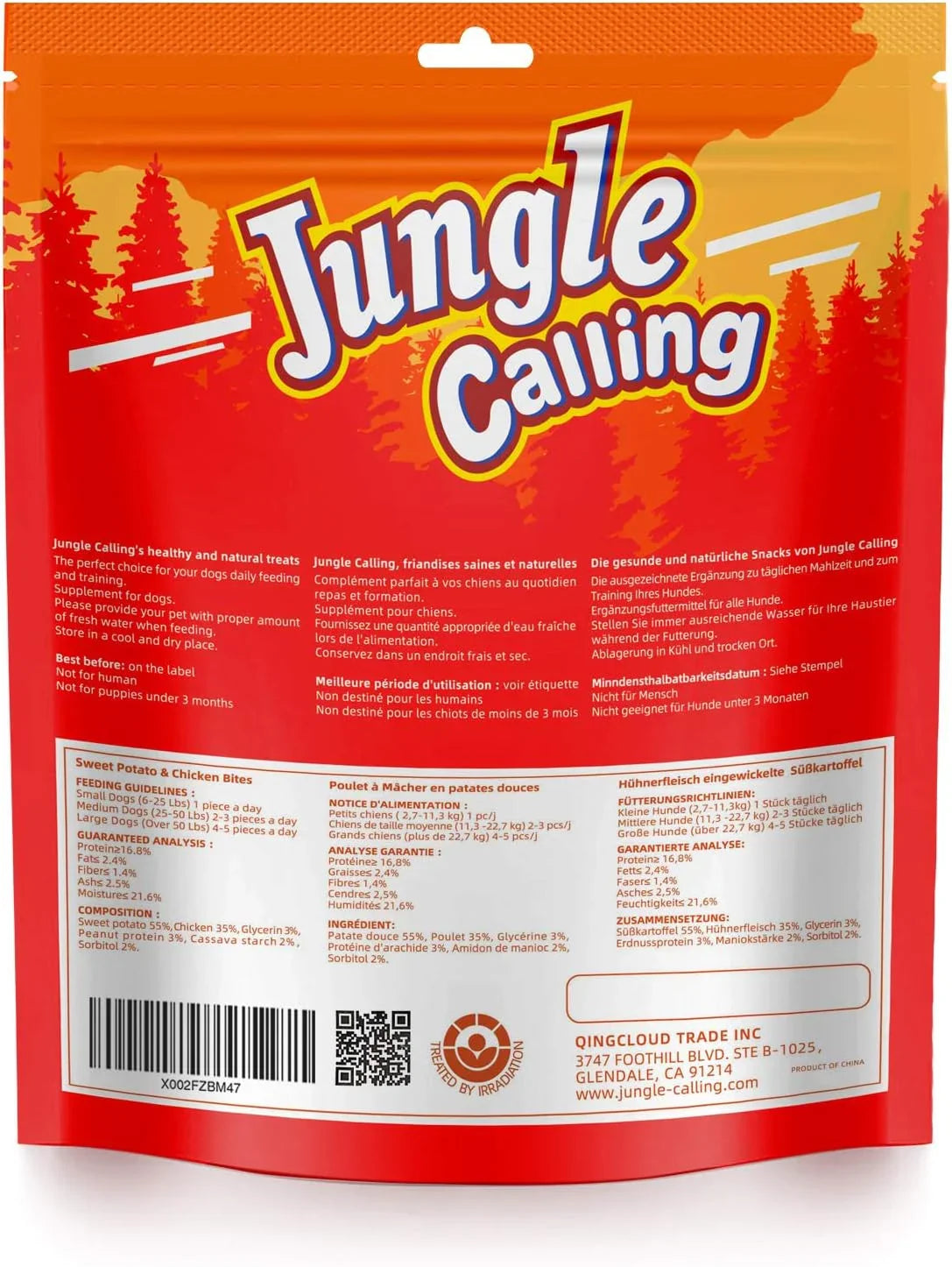 Jungle Calling Dog Treats, Chicken Wrapped Sweet Potato, Gluten and Grain Free, Chewy Dog Bites for Balanced Nutrition, 10.6 oz